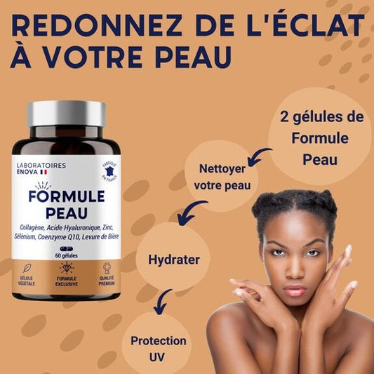 Formule Peau - Collagene Marin, Acide Hyaluronique, Coenzyme Q10, Zinc Selenium Levure de Biere - Antioxydant, Hydratation, Imperfection